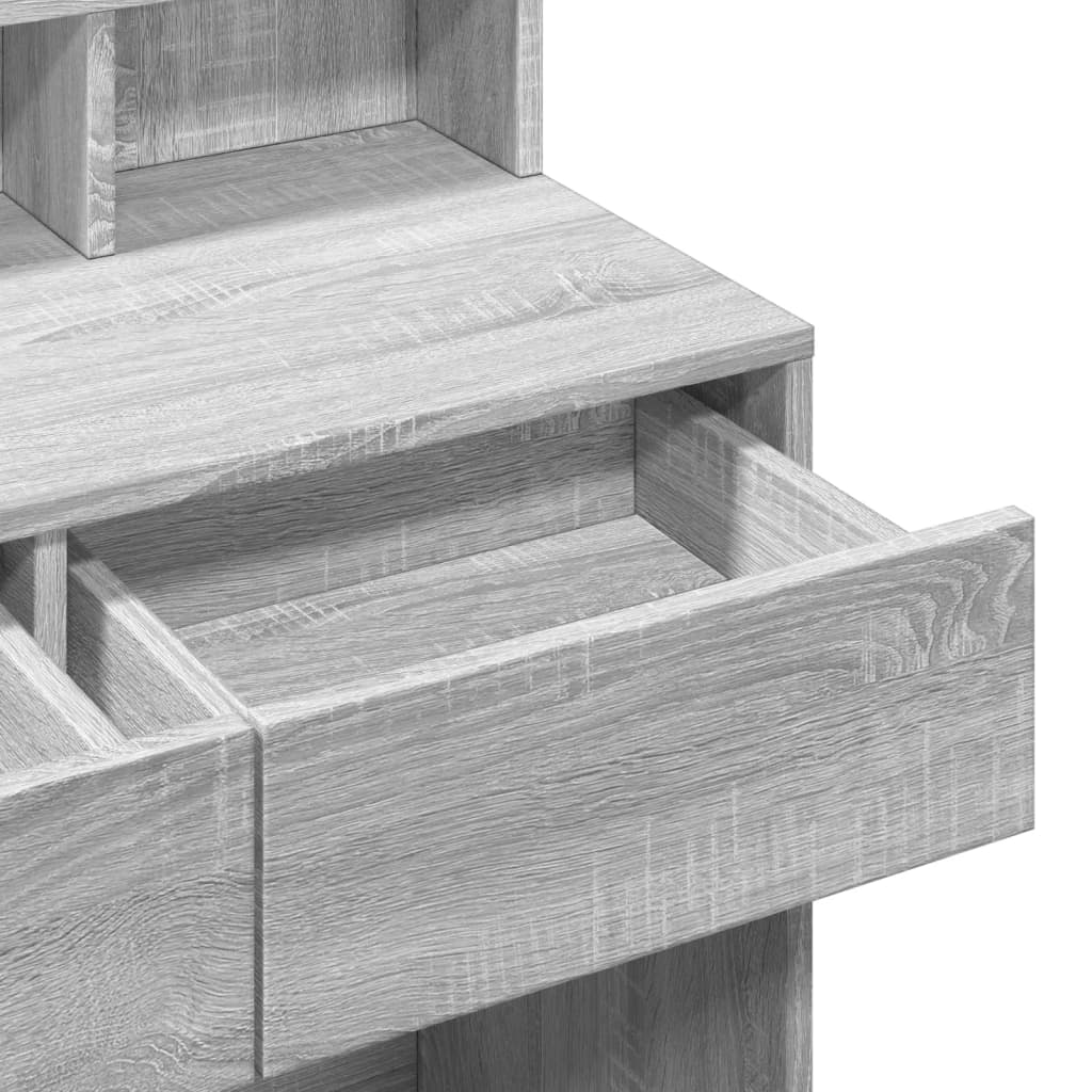 Et smukt og funktionelt makeupbord med LED-lys er den perfekte tilføjelse til dit soveværelse, walk-in closet eller påklædningsrum. Dette elegante sminkebord i grå sonoma-eg finish kombinerer moderne design med praktisk funktionalitet, og skaber det ideelle rum for din daglige skønhedsrutine.