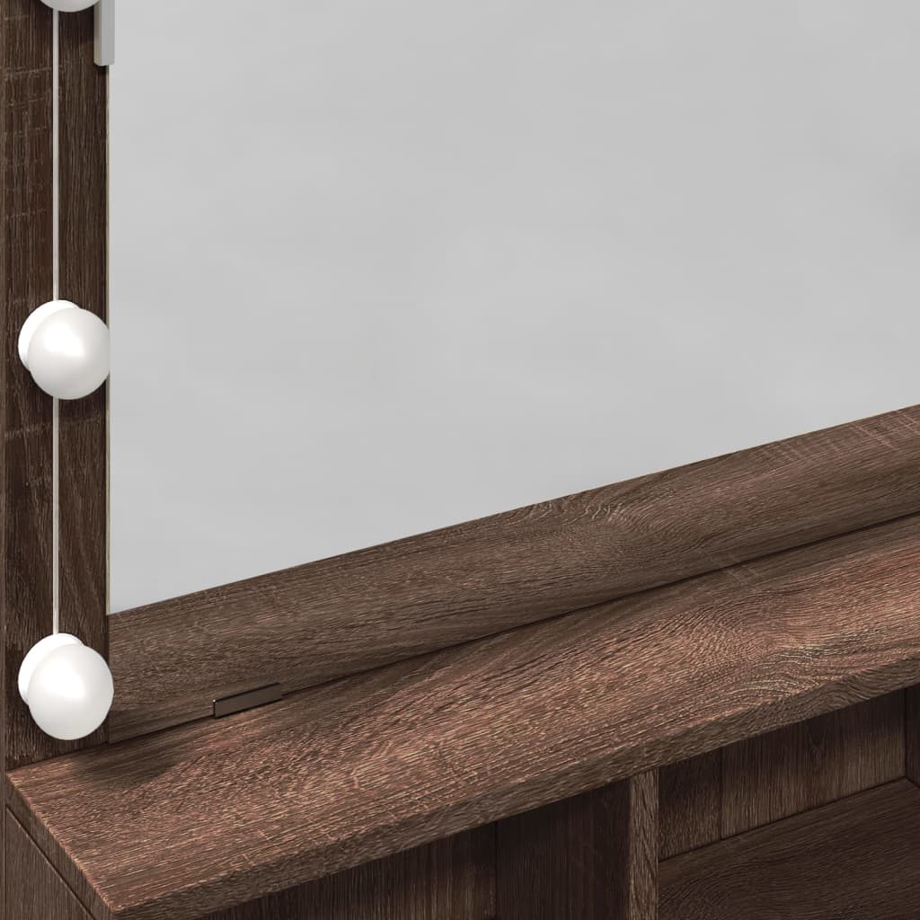 Med indbyggede LED-pærer omkring spejlet får du optimal belysning til makeup påføring og hudpleje. LED-belysningen kan nemt justeres mellem varmt og koldt hvidt lys via USB-tilslutning, så du altid kan se, hvordan din makeup vil se ud i forskellige lysforhold. Dette professionelle makeupbord med spejl og lys sikrer, at du får det perfekte resultat hver gang.
