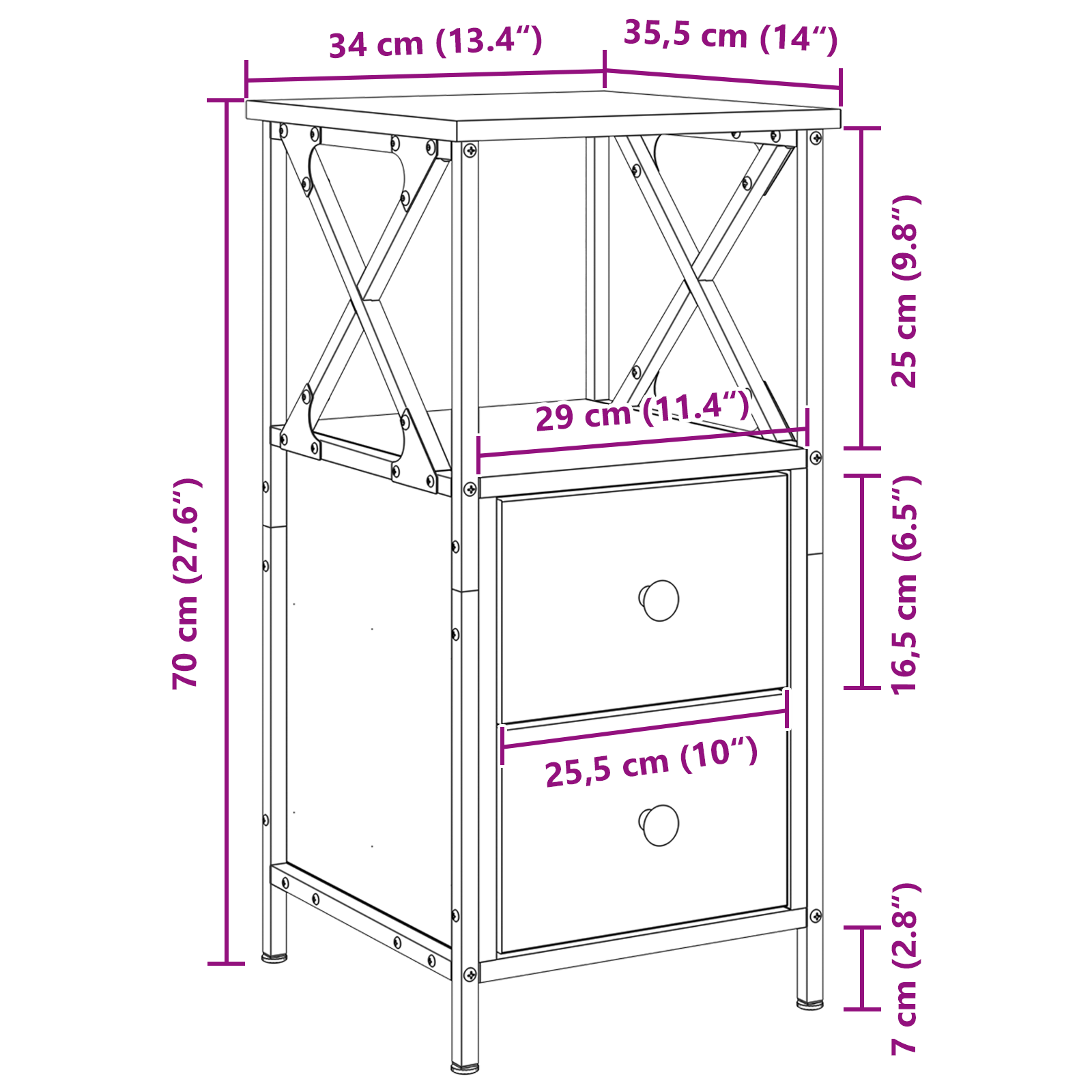 Sengebord 2 Dele Sort Eg 34 X 35,5 X 70 Cm Laminat Træ Og Metal