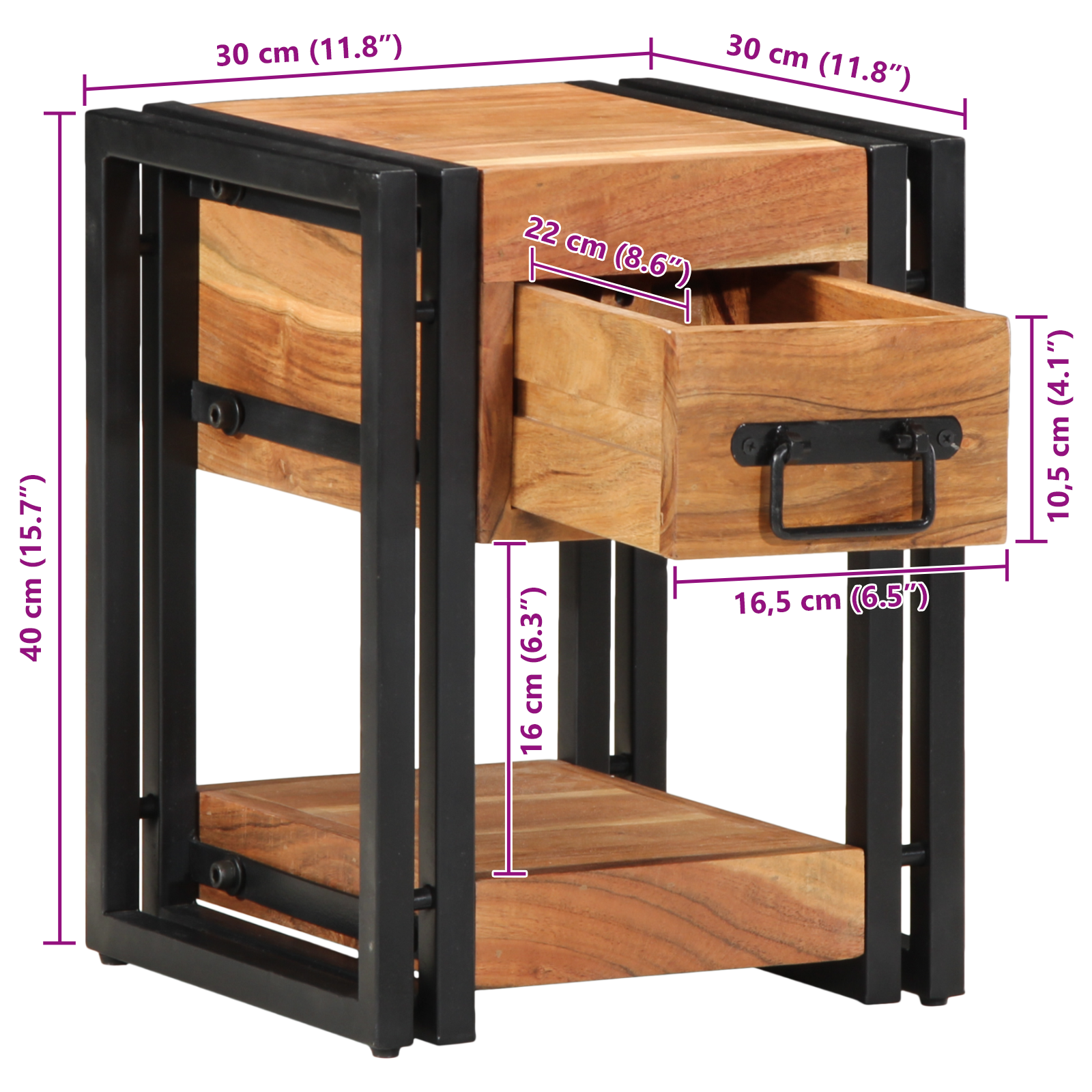 Dette elegante natbord i solidt akacietræ er det perfekte valg til dit soveværelse. Med sine kompakte mål på 30x30x40 cm passer dette sengebord ideelt ved siden af din seng, hvor det tilbyder både stilfuld opbevaring og praktisk funktionalitet.