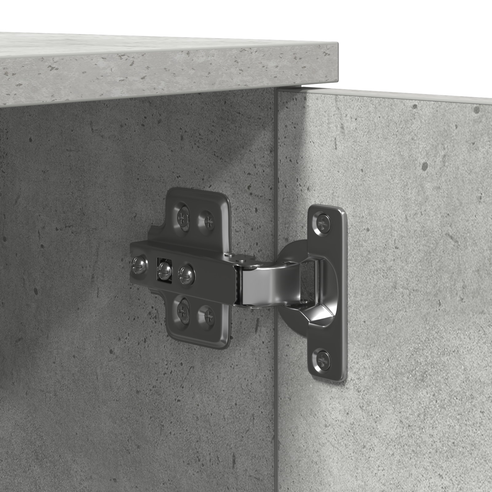 Skabet er fremstillet af holdbar MDF og naturlig beton, der sikrer både stabilitet og et stilrent udseende. Den mat grå finish giver møblet en sofistikeret karakter, som harmonerer smukt med moderne indretningsstile og minimalistiske hjem.