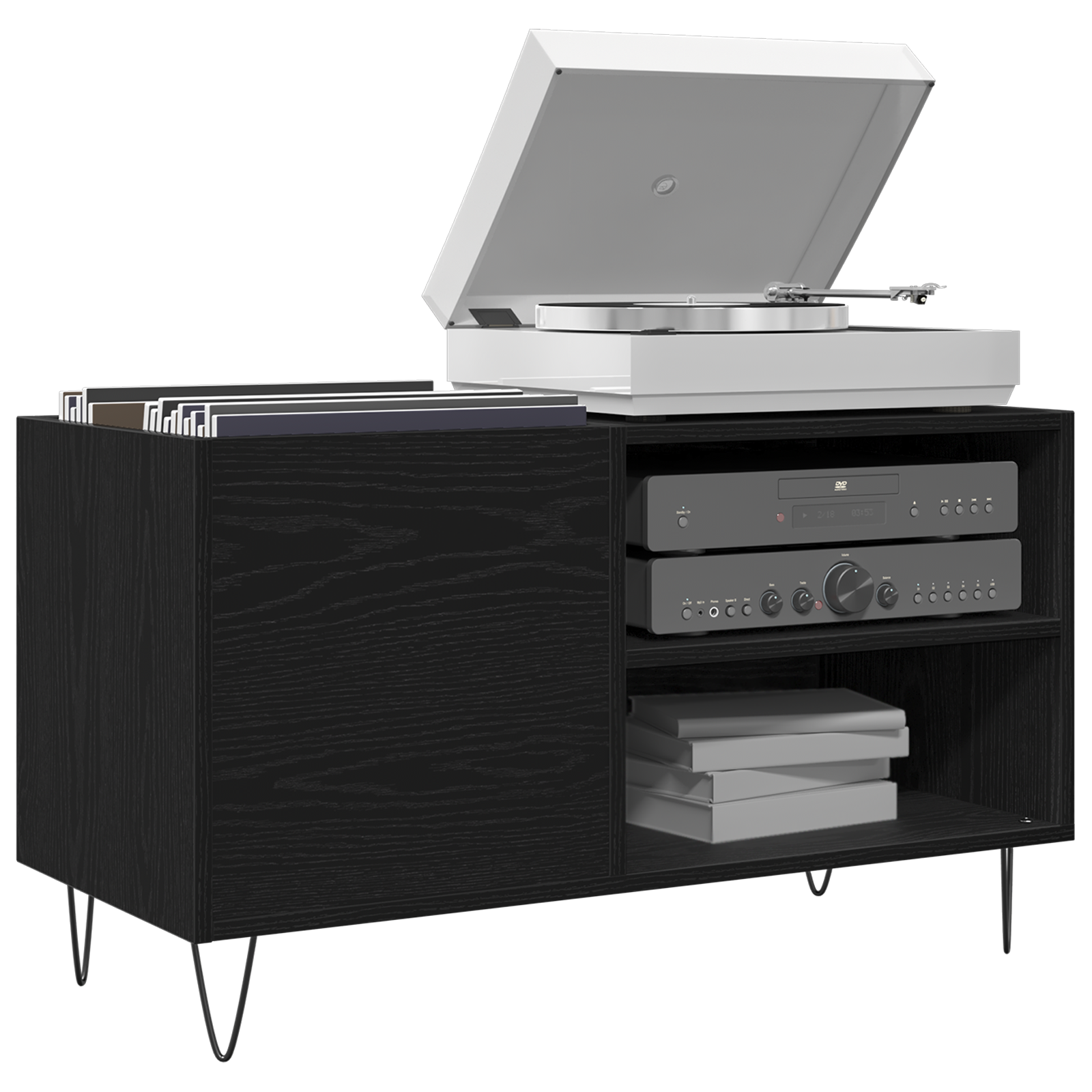 De tre rummelige opbevaringsrum gør dette vinyl skab til en alsidig opbevaringsløsning. Organiser din pladesamling systematisk, opbevar bøger, magasiner eller brug det som mediemøbel til elektronik og tilbehør. Hvert rum er designet med tanke på funktionalitet og nem adgang til dine yndlingsplader.