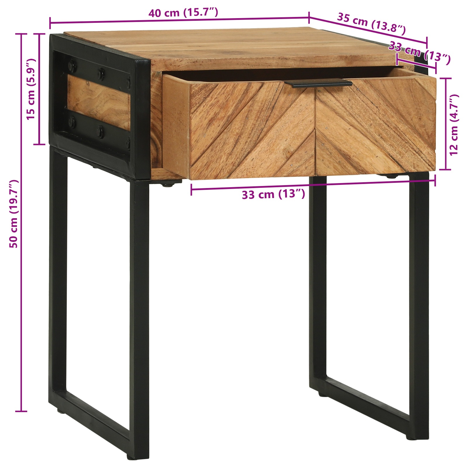 Dette stilfulde sengebord i massivt akacietræ er det perfekte valg til dit soveværelse, når du ønsker både funktionalitet og æstetik. Med sine kompakte mål på 40x35x50 cm passer det elegante natbord perfekt ved siden af sengen, selv i mindre soveværelser hvor pladsen er begrænset.