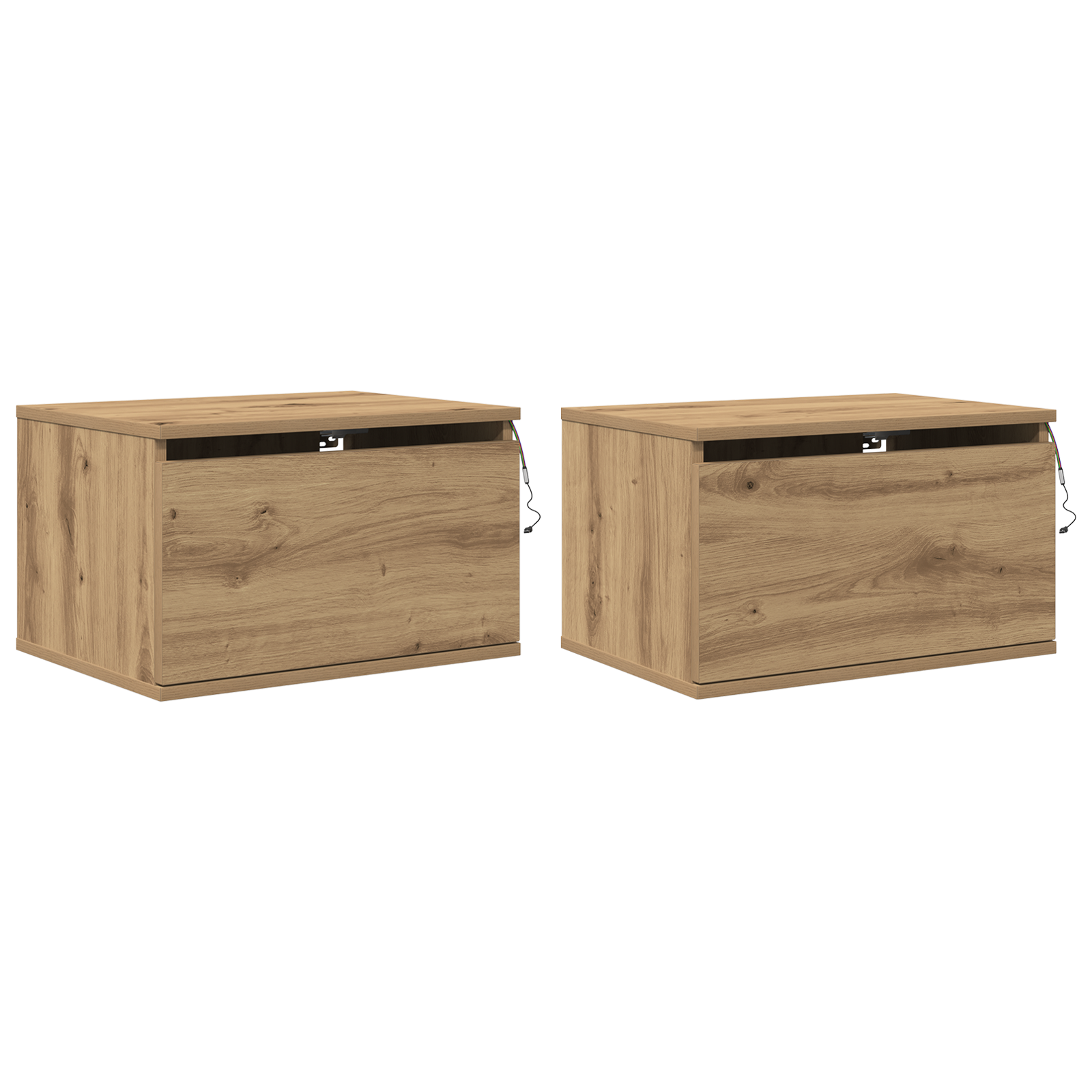 Vægmonteret Natbord Med Skuffe 2 Dele Artisan Eg 50 X 36 X 30 Cm