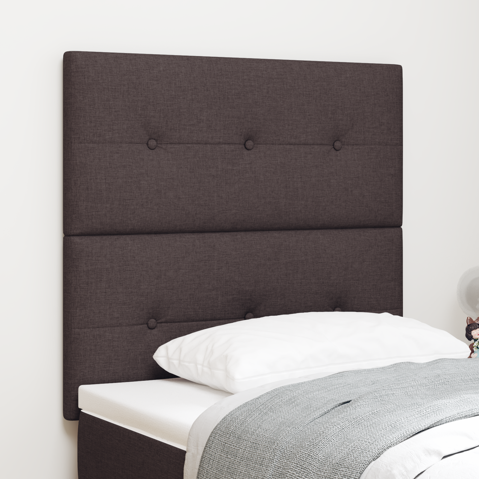 Leveringen indeholder: 1 x Sengegavl med knapper i mørkebrun stof (90 cm)
