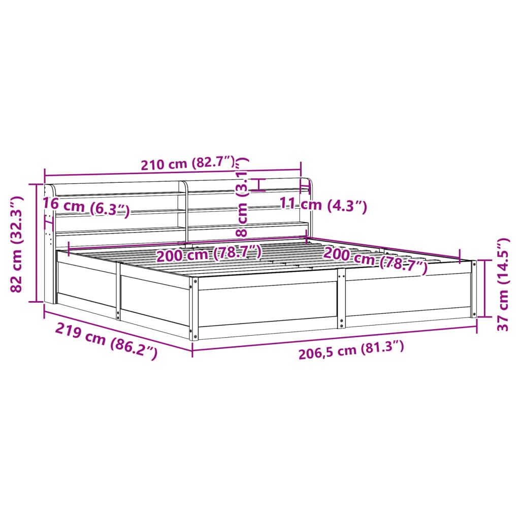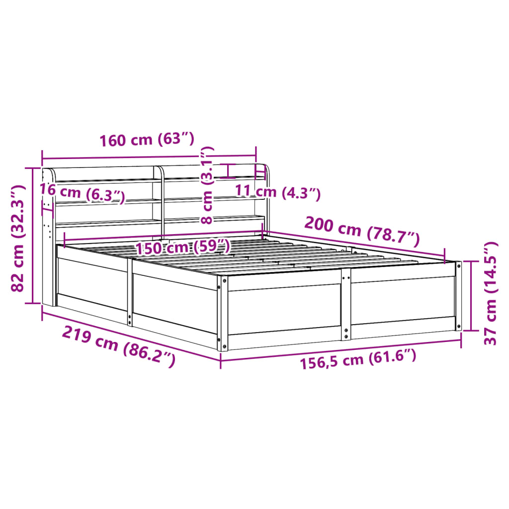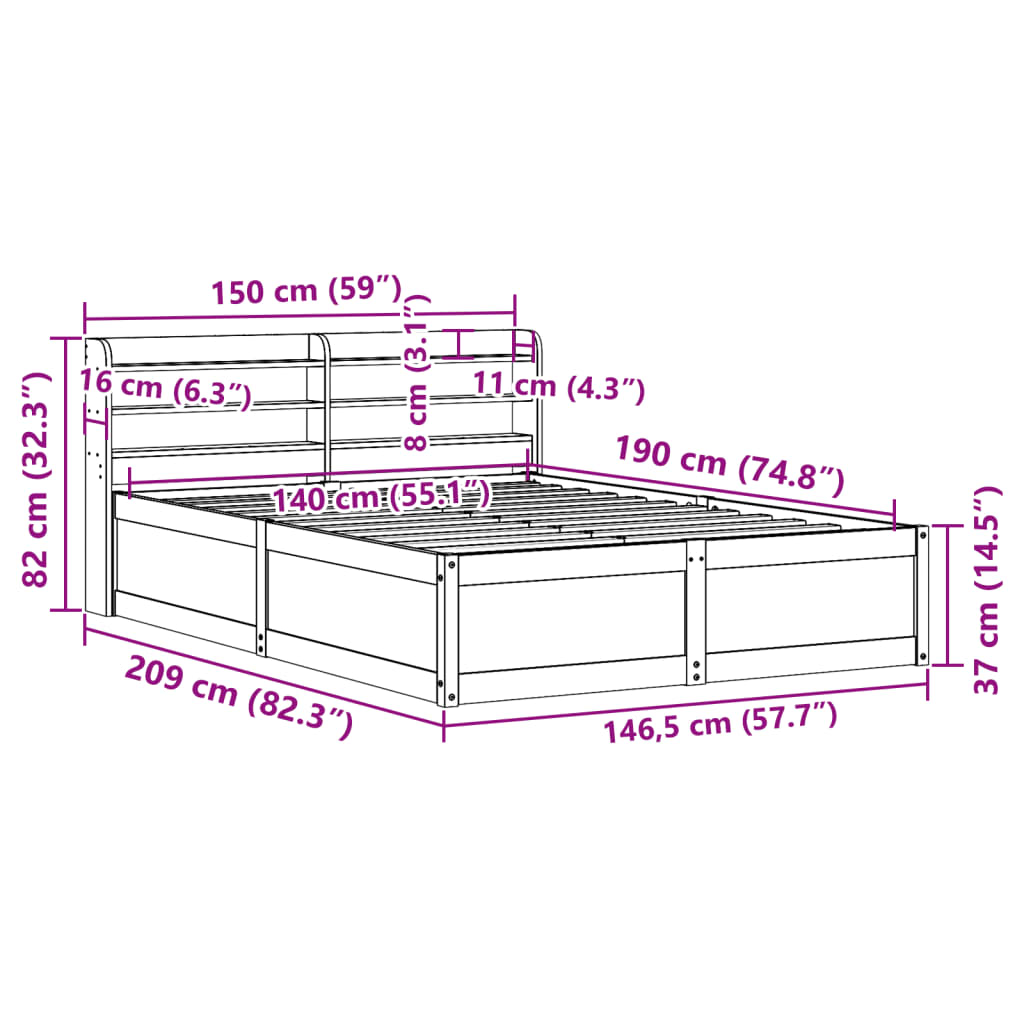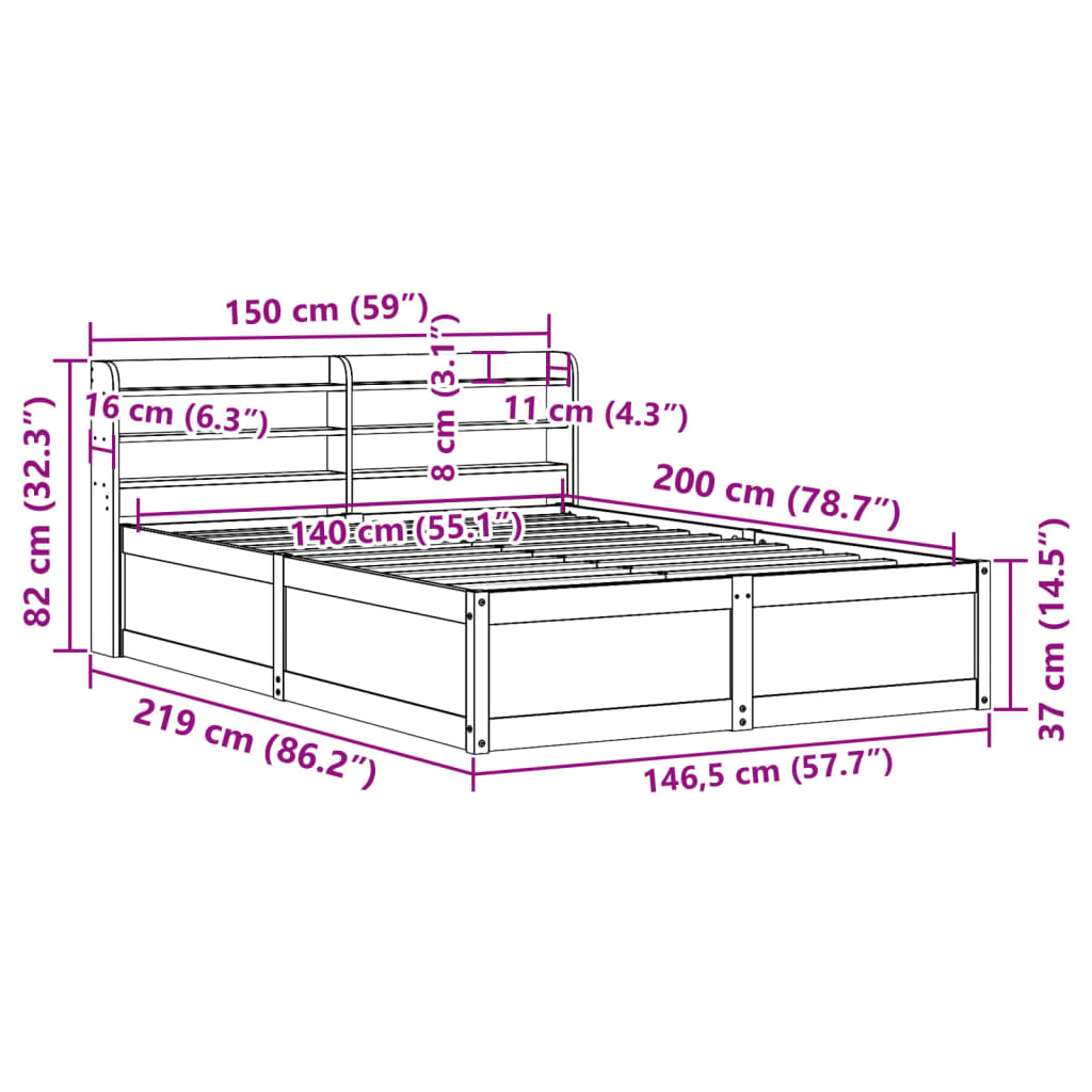 Med mål på 219 x 150 x 82 cm passer denne sengeramme perfekt til en 140 x 200 cm madras, hvilket gør den ideel som dobbeltseng til par eller som rummelig enkeltseng. Den gyldne farve på fyrretræet komplementerer et bredt udvalg af sengetøj og soveværelsesindretninger.