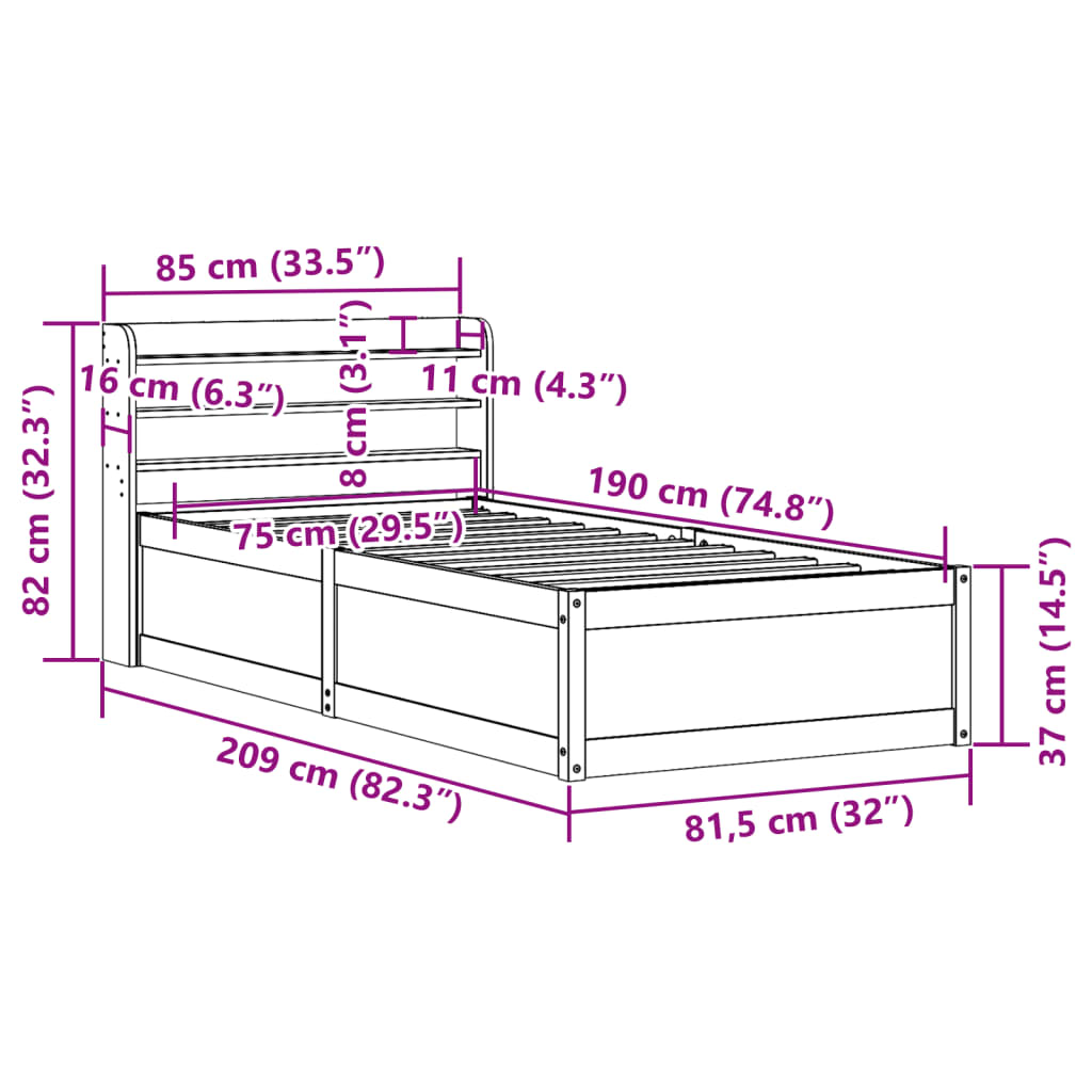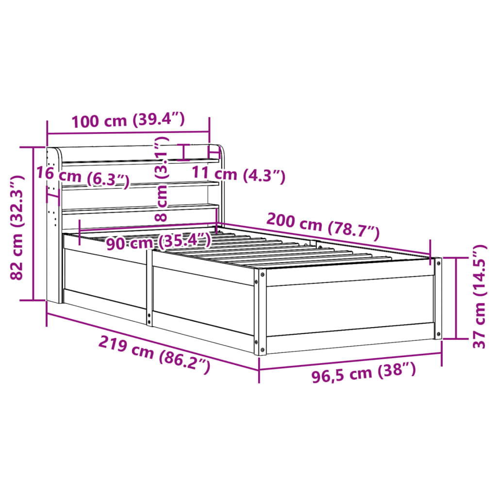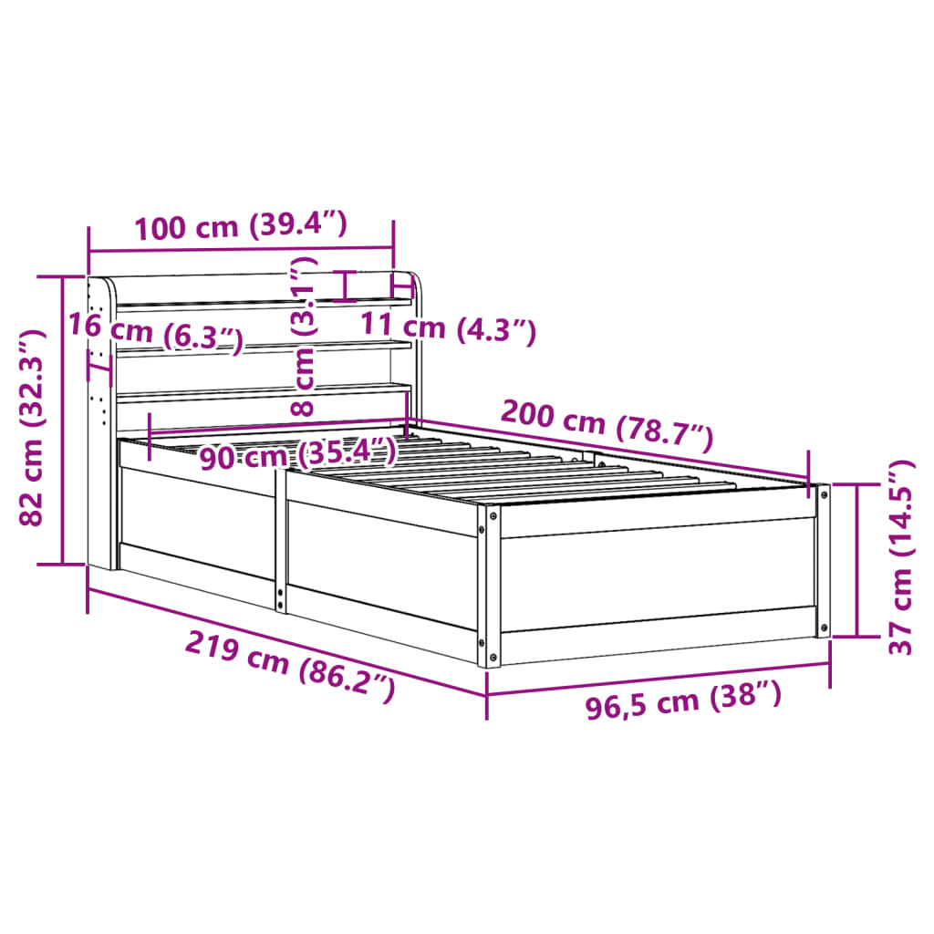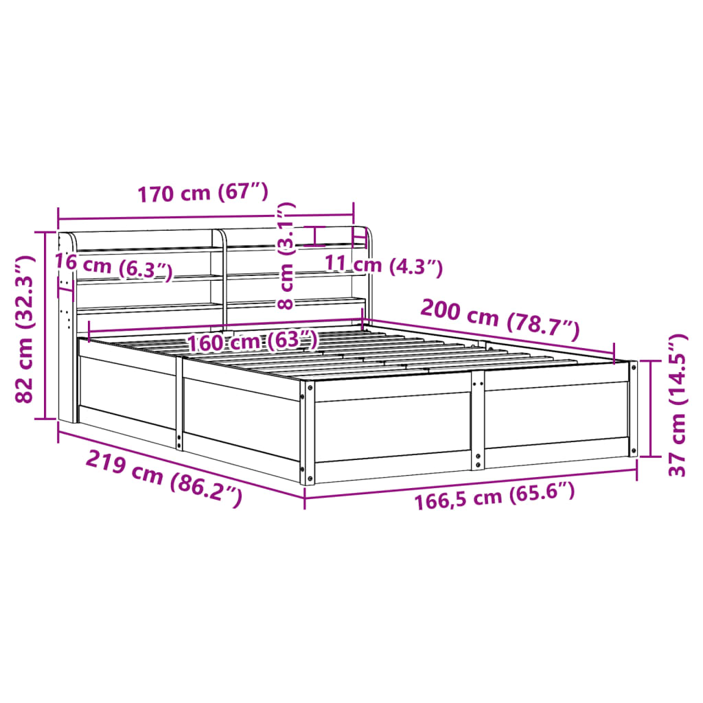 Med mål på 219 x 150 x 82 cm passer denne sengeramme perfekt til en 140 x 200 cm madras, hvilket gør den ideel som dobbeltseng til par eller som rummelig enkeltseng. Den gyldne farve på fyrretræet komplementerer et bredt udvalg af sengetøj og soveværelsesindretninger.