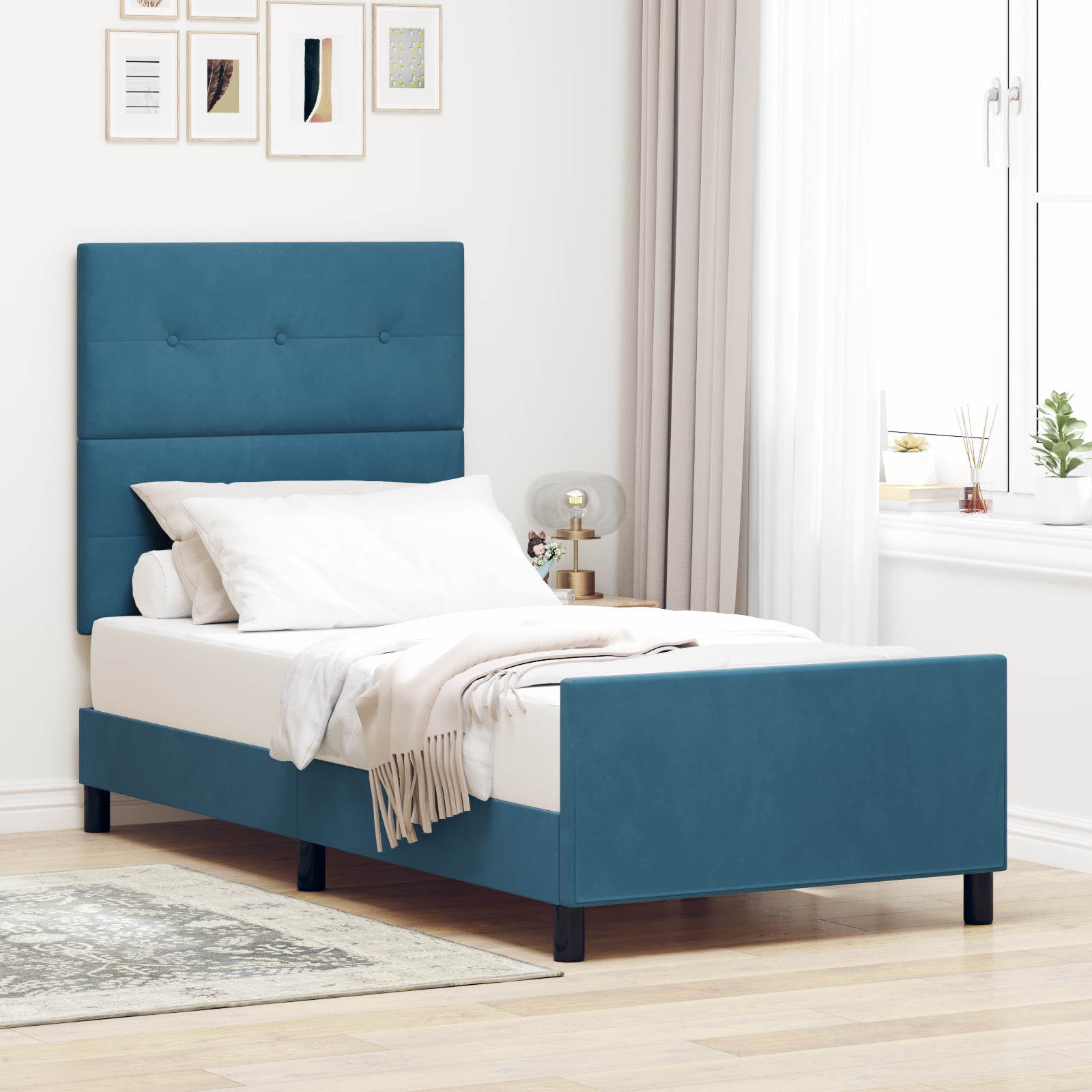Sengestel Med Hovedgærde Mørkeblå 90 X 190 Cm Fløjl