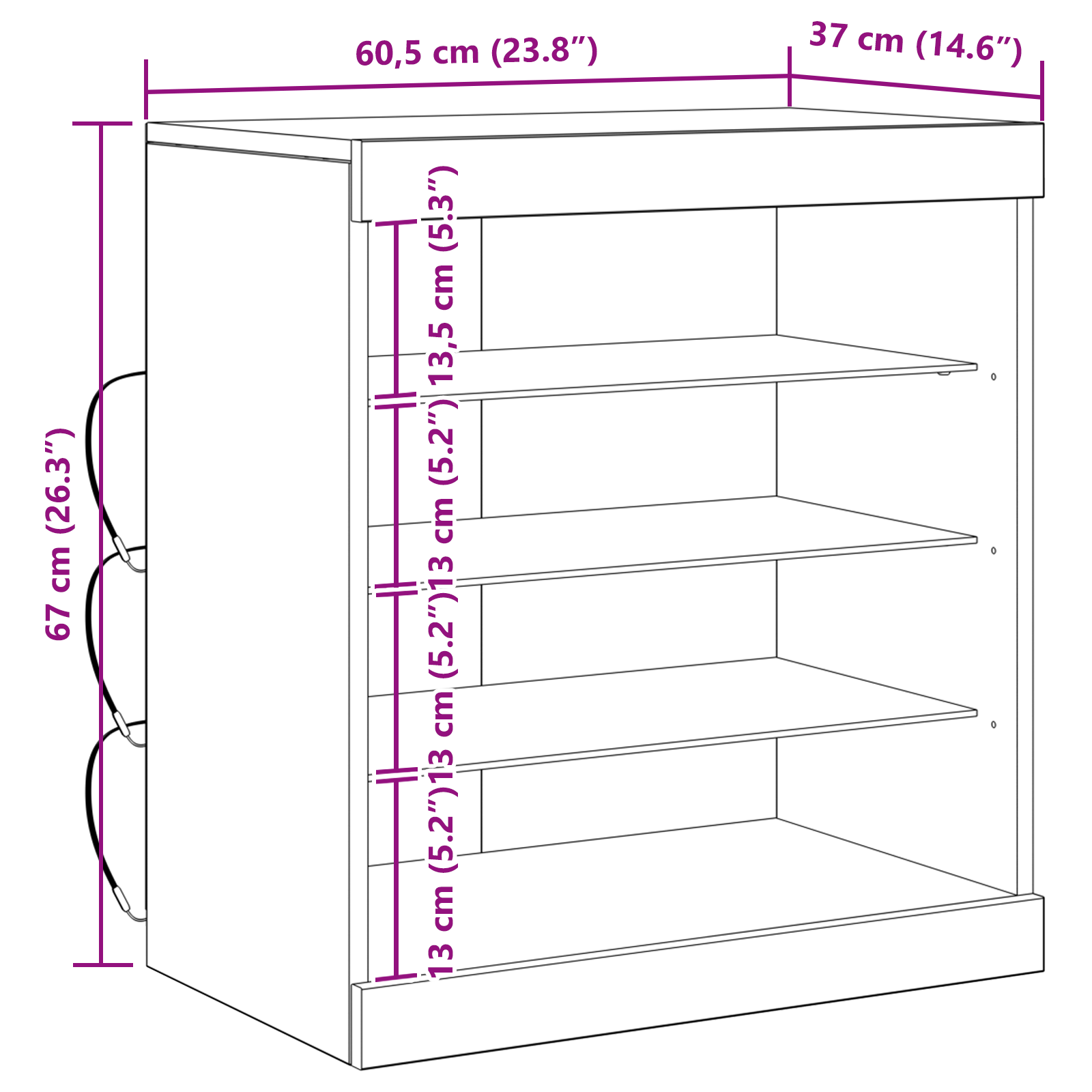 - Mål: 60,5 x 37 x 67 cm