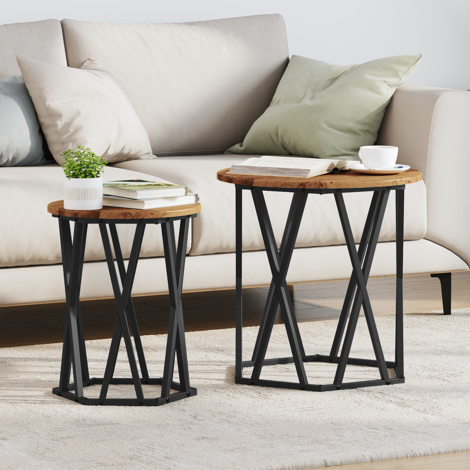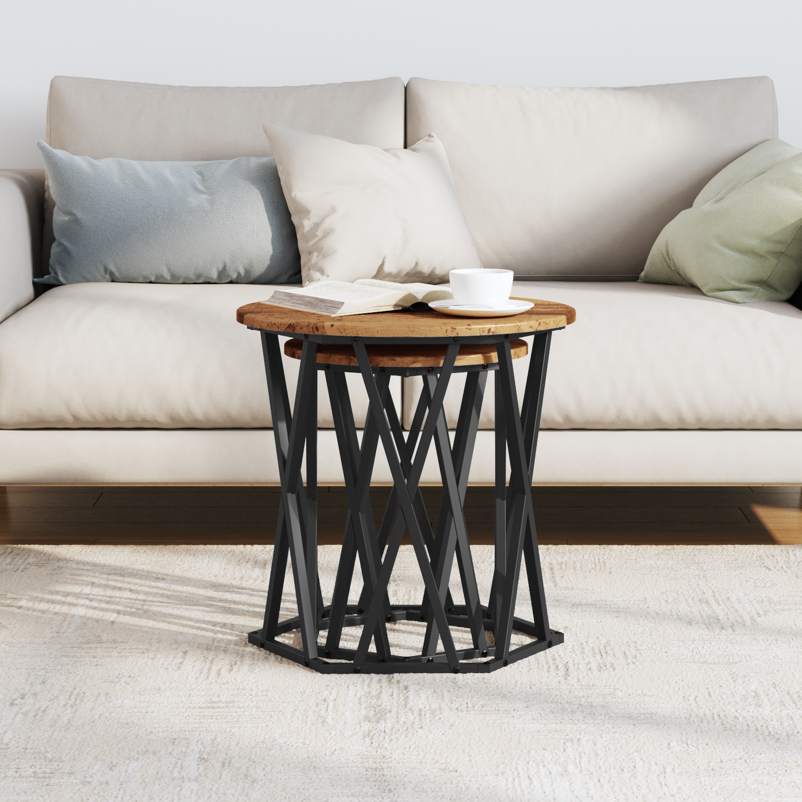Sofabord 2 Dele Gammelt Træ 50 X 50 X 50 Cm Ingeniørtræ Og Stål