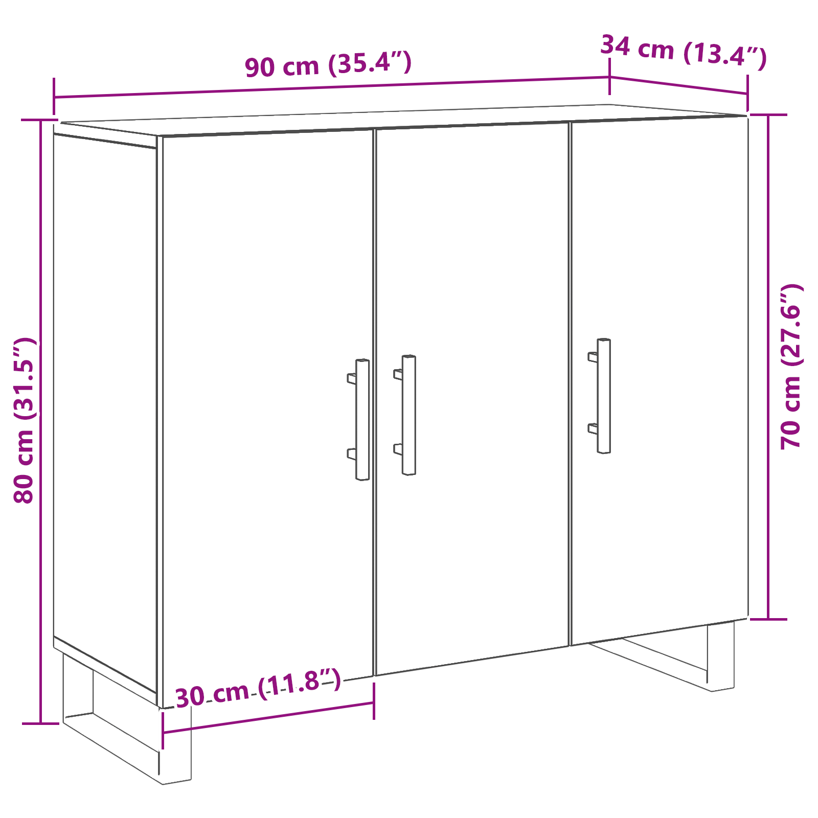 Sideboard Sort Eg 90 X 34 X 80 Cm Konstrueret Træ