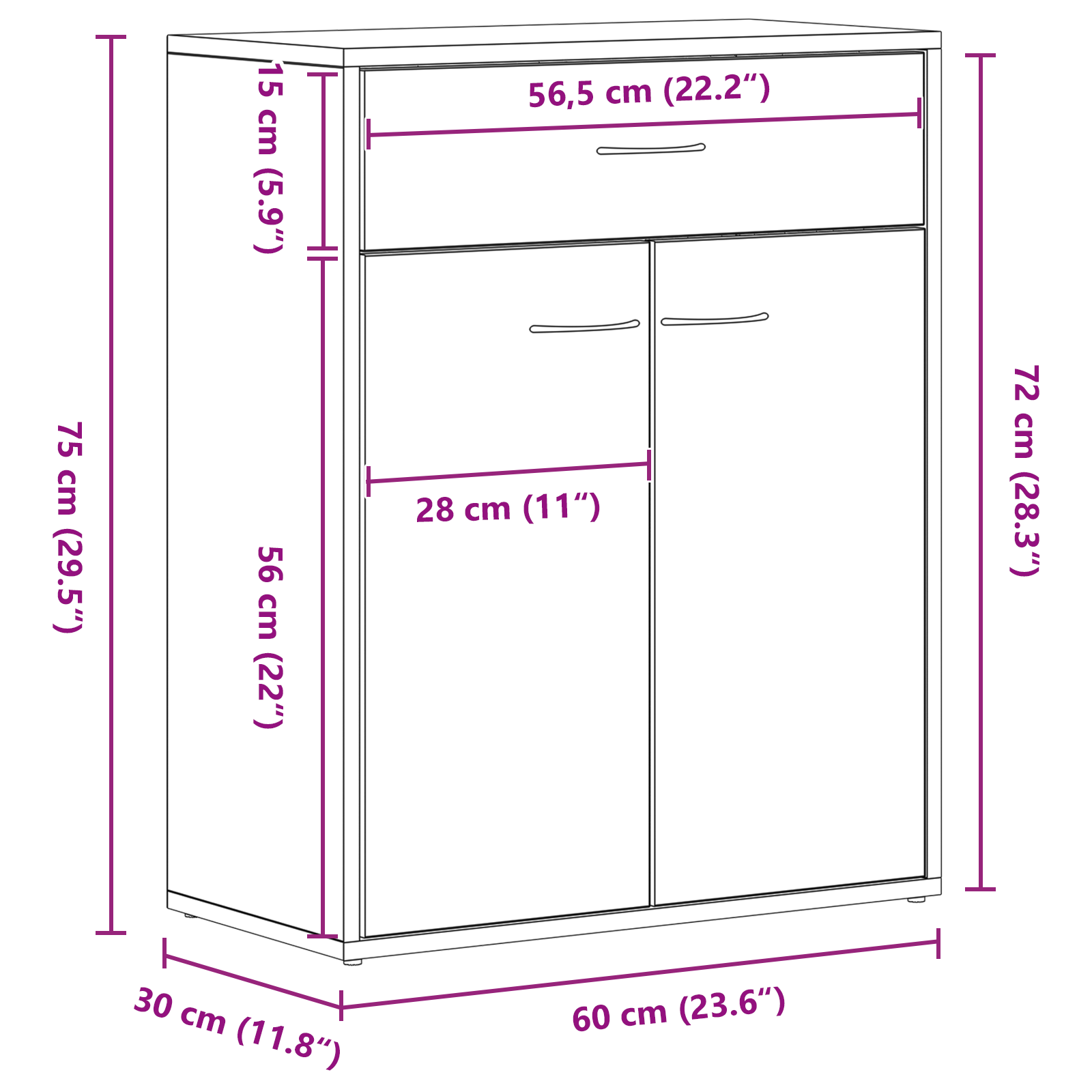 Sideboard Med Skuffe Sort 60 X 30 X 75 Cm Konstrueret Træ