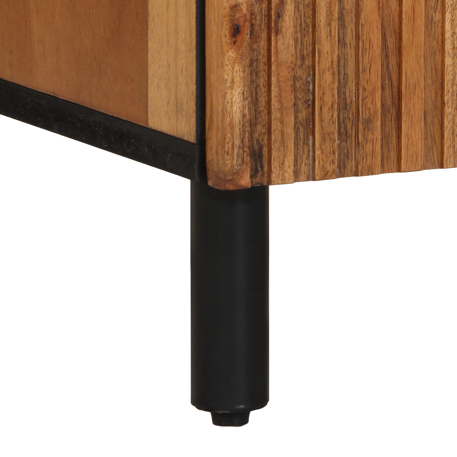 Skabsbordet er fremstillet i massivt akacietræ, kendt for sin eksceptionelle holdbarhed og smukke, naturlige årer. Den varme brune farve og den lakerede overflade fremhæver træets naturlige skønhed, mens den samtidig beskytter mod daglig slitage. Dette gør møblet til en langtidsholdbar investering i dit hjem.