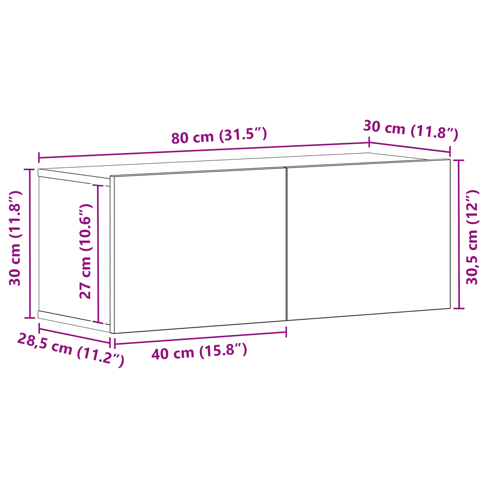 - Mål: 80 x 30 x 30,5 cm (L x B x H)