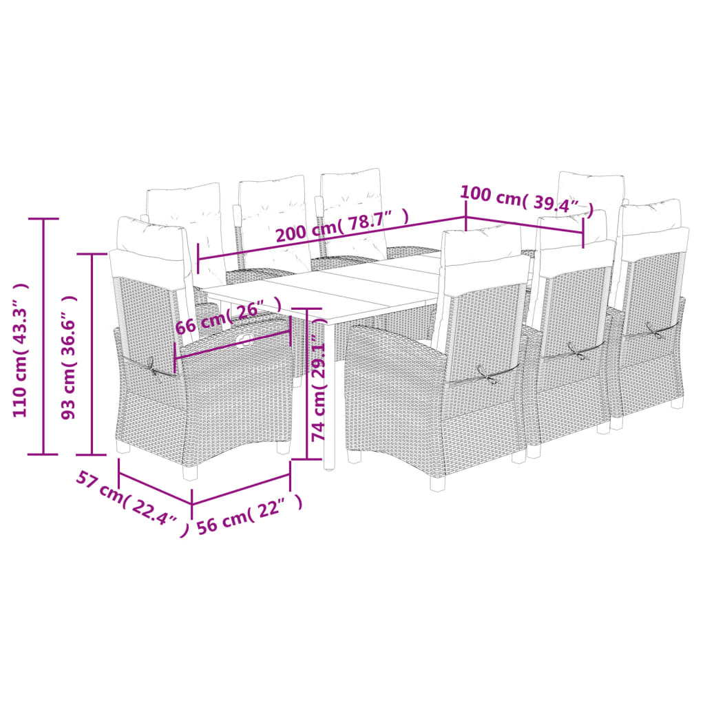 Sættet består af et stilfuldt havebord med glasplade og fire komfortable havestole med justerbart ryglæn, hvilket gør det ideelt til både spisning og afslapning. De medfølgende luksushynder i antracitgrå sikrer optimal siddekomfort, mens det vejrbestandige polyrattan-materiale garanterer holdbarhed sæson efter sæson.