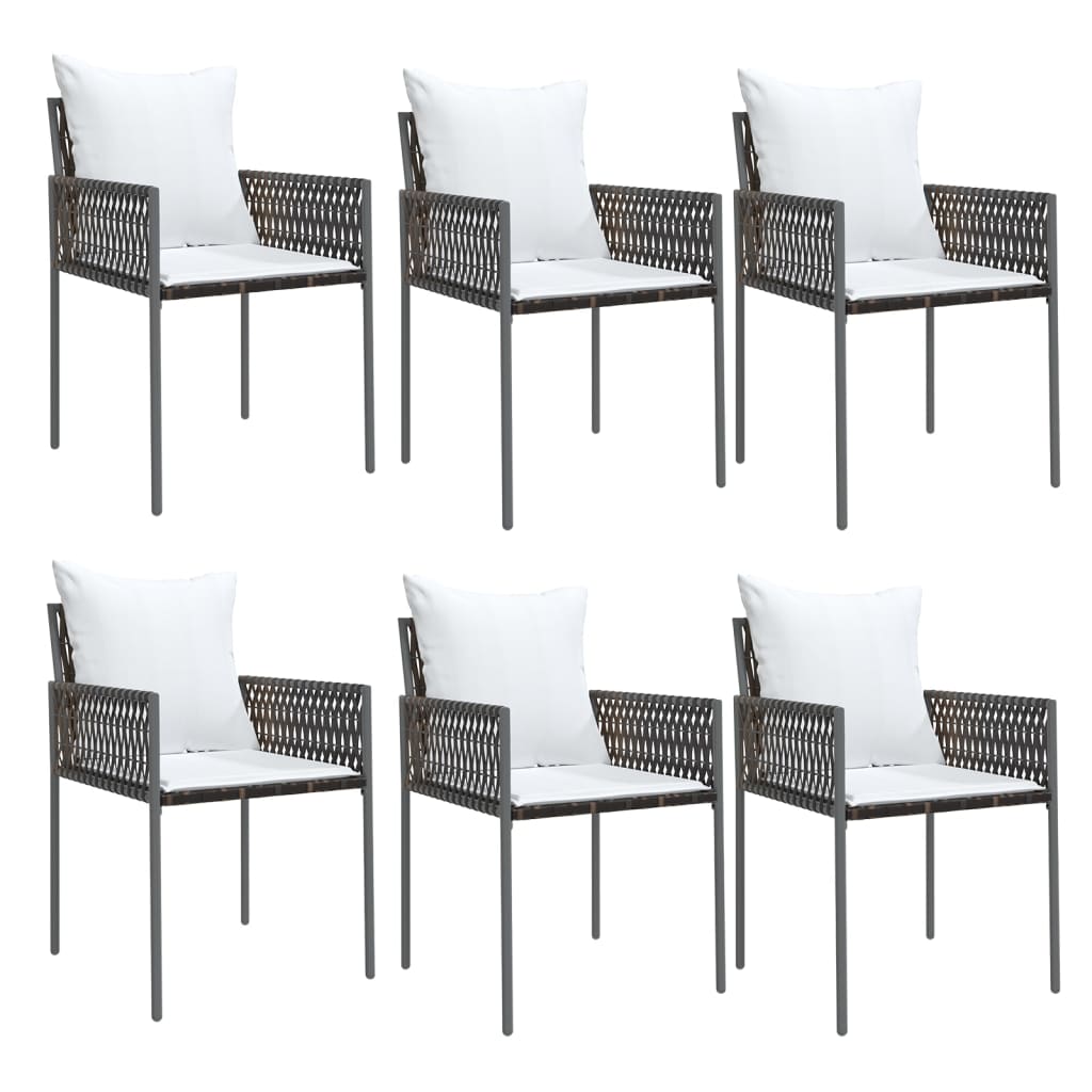 - 8 polstrede stole med tykke hynder i mørkegrå