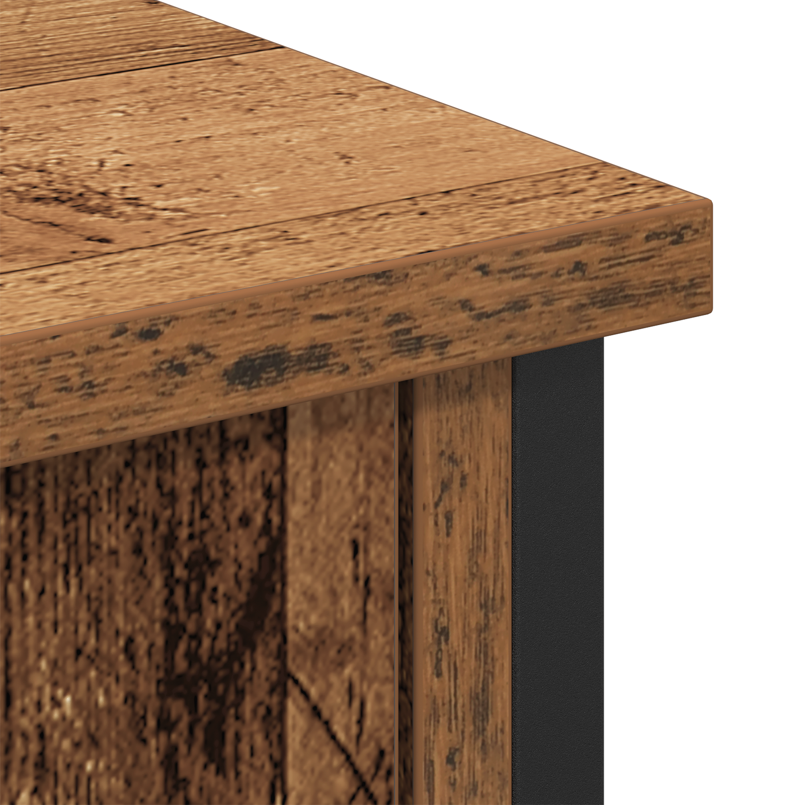 Tv-bænken er fremstillet i højkvalitets konstrueret træ med en smuk egetræsfinish, der fremhæver træets naturlige åretegning. Den robuste stålkonstruktion sikrer optimal stabilitet og holdbarhed, mens det rustikke udtryk med forvitret finish giver møblet en autentisk vintage-karakter, der passer perfekt ind i både moderne og klassiske hjem.