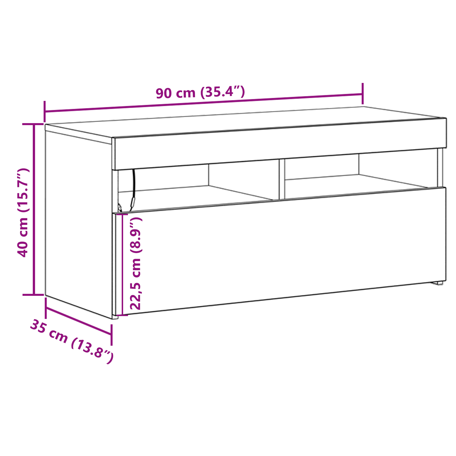 - Mål: 90 x 35 x 40 cm (L x B x H)