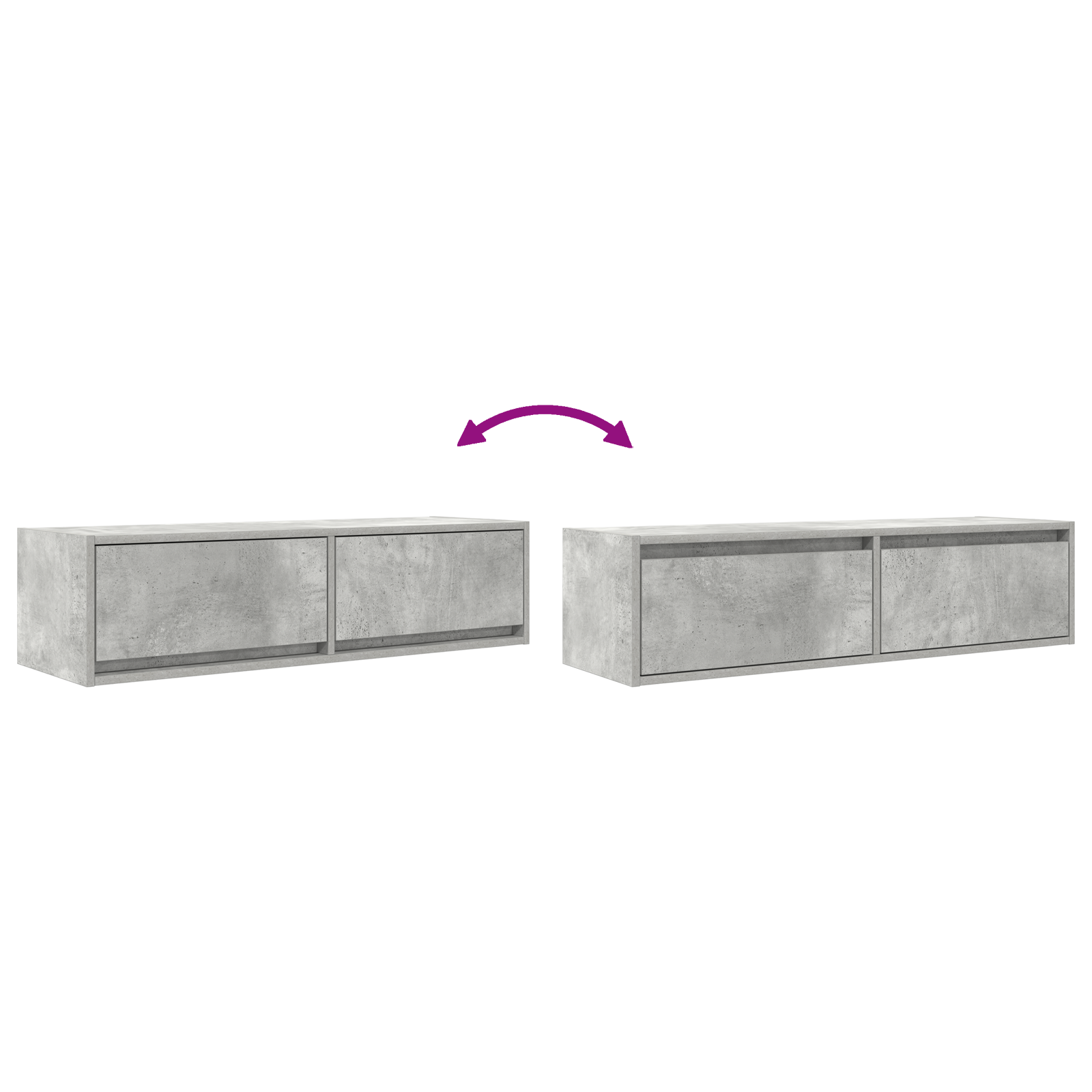 Opgrader dit hjem med dette moderne tv-skab i betongrå, som kombinerer stilfuldt design med praktisk funktionalitet. Med sine kompakte mål på 100 x 31 x 25,5 cm er dette vægmonterede tv-møbel den perfekte løsning til moderne boliger, hvor pladsen skal udnyttes optimalt.