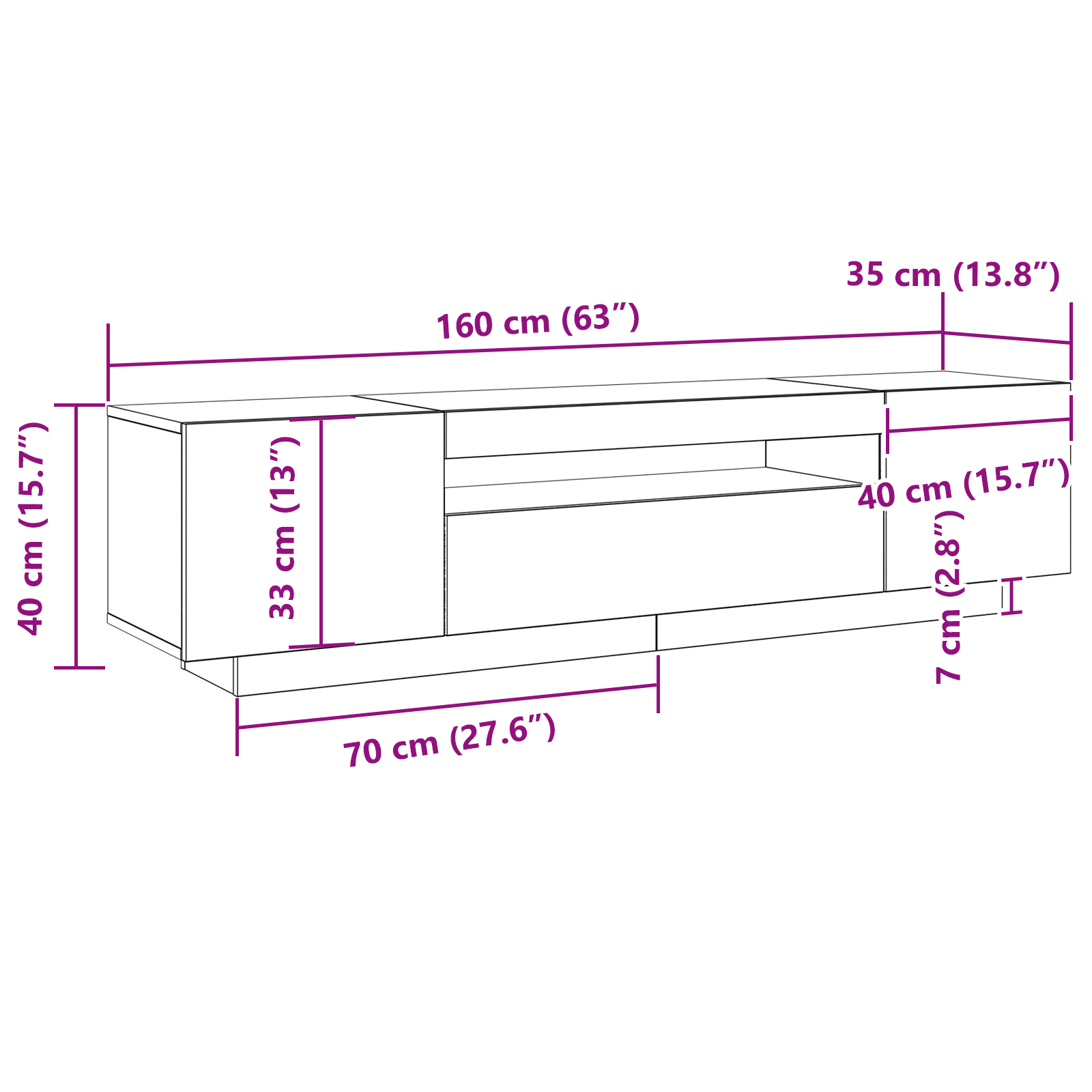 - Mål: 160 x 35 x 40 cm (B x D x H)