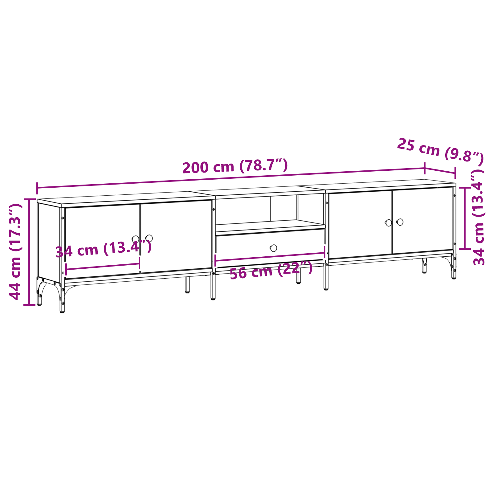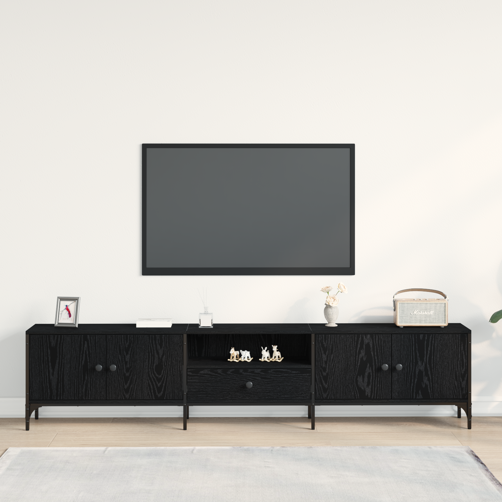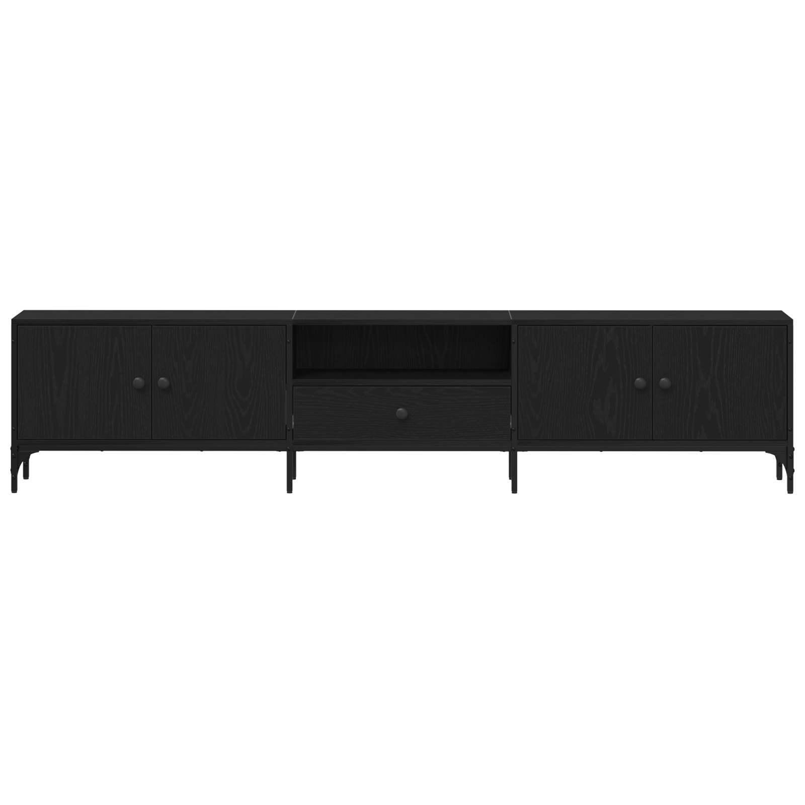 Tv-Skab Med Skuffe Sort Eg 200 X 25 X 44 Cm Konstrueret Træ