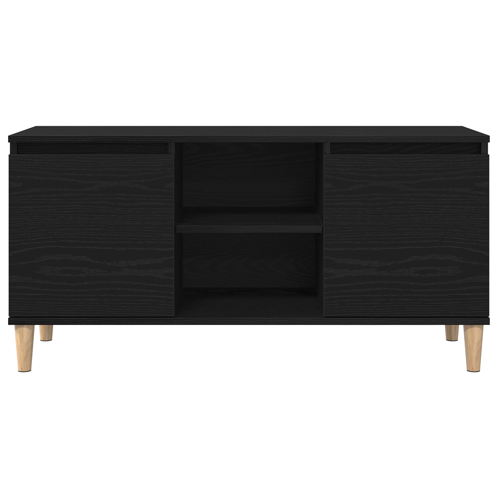 Med sine kompakte mål på 102x35x50 cm passer dette tv-bord perfekt ind i både små og store stuer. Den matte sorte egetræsfinish tilføjer et sofistikeret udtryk til dit hjem, mens de slanke træben løfter møblet 10 cm fra gulvet og skaber en let og luftig fornemmelse i rummet.
