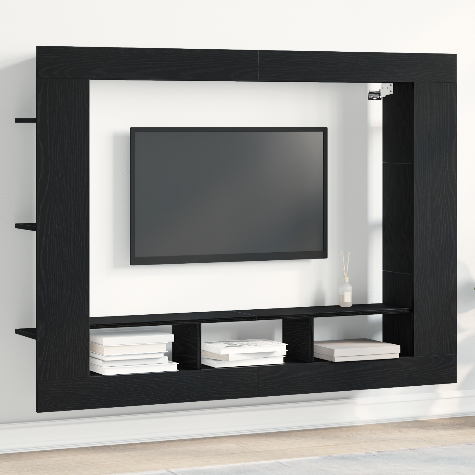 Tv-Skab Vægmonteret Sort Eg 152 X 22 X 113 Cm Konstrueret Træ