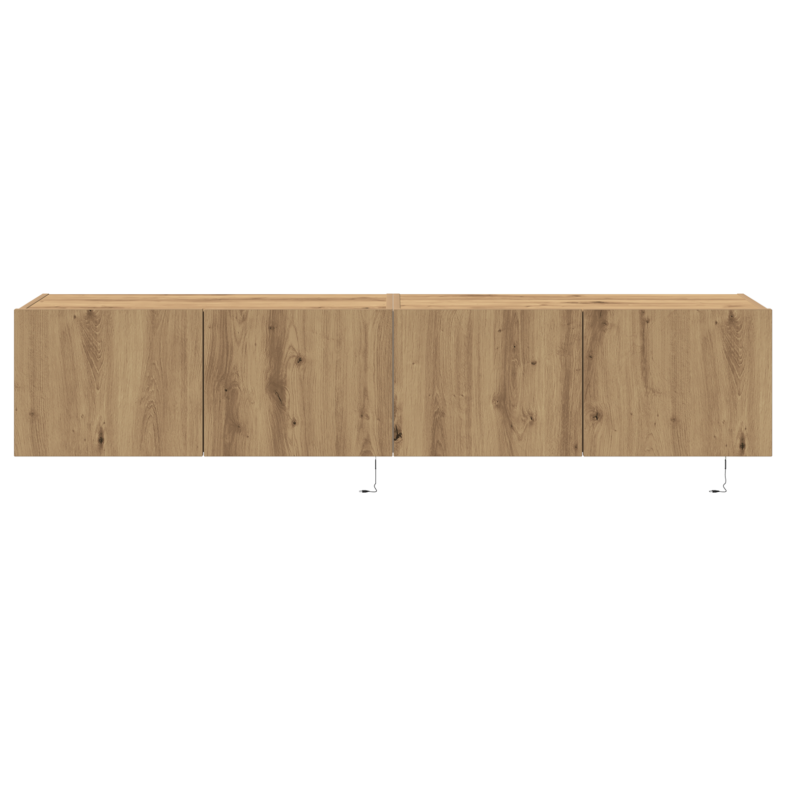 Opgrader din stue med disse moderne tv-vægs skabe med LED-lys i elegant artisan eg finish. Dette sæt består af to matchende vægmonterede tv-skabe, der kombinerer stilfuldt design med praktisk funktionalitet. Den varme egetræsfinish og de rene linjer skaber en tidløs æstetik, der passer perfekt ind i både moderne og klassiske hjem.